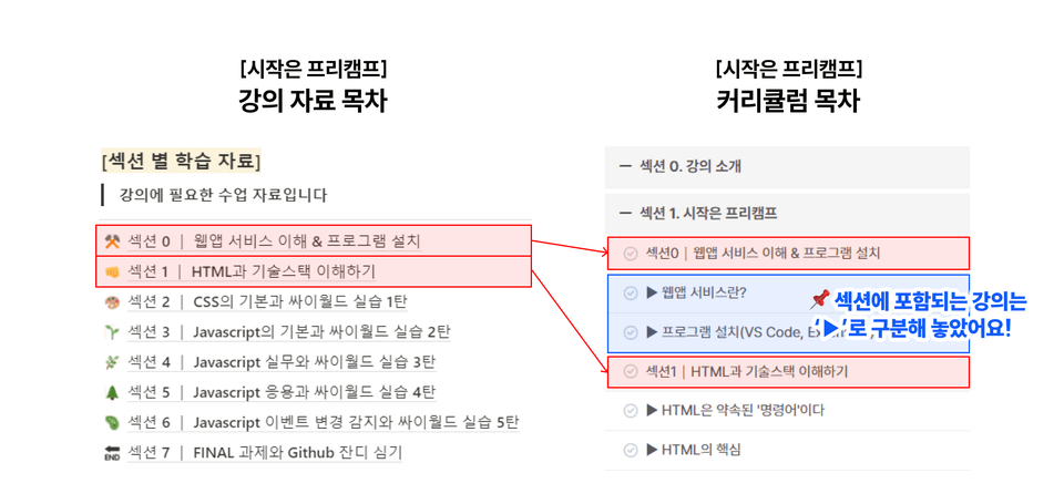 Q. 기초강의 (시작은 프리캠프, Javascript)의 수업자료 리스트가 헷갈려요.